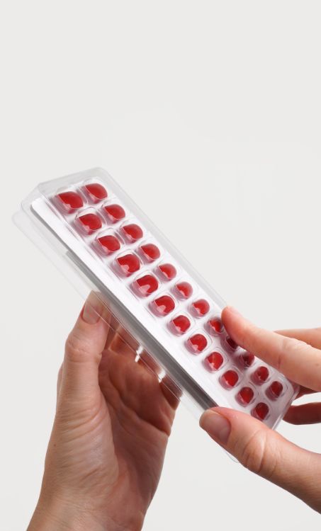 Placez l'ongle artificiel choisi à un angle de 45 degrés à la base de l'ongle et appuyez doucement pour le faire adhérer. Appuyez ensuite fermement pendant environ 60 secondes. Résultat : une manucure parfaite en moins de 10 minutes !