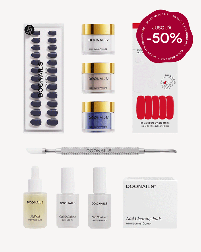 Tu aimes avoir des ongles parfaitement soignés, mais tu n'as pas le temps ou l'envie de faire de longues séances dans un salon de manucure ? Alors nos ongles Press On en gel souple sont la solution idéale pour toi ! Avec les faux ongles réutilisables de Doonails, tu peux réaliser un beau design d'ongles en quelques minutes. Et ce, sans lampe UV, sans acrylique ni traitement coûteux.