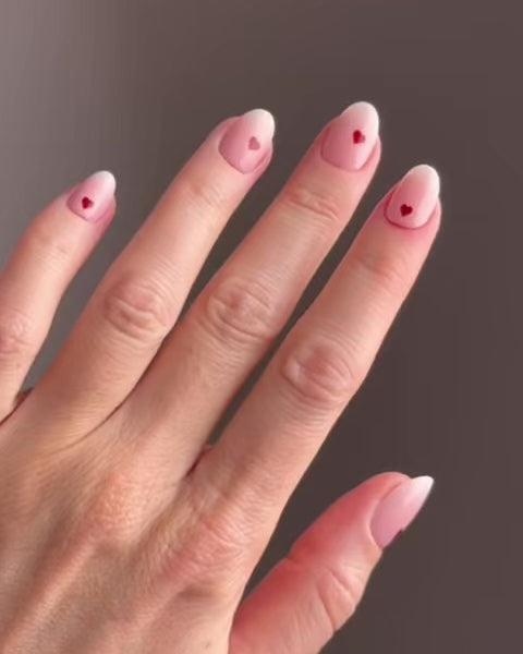 Tombe amoureux de nos Secret Crush Press Ons ! Ces charmantes ongles courts et ronds en babyboomer rose doux sont agrémentés de jolis cœurs rouge foncé. Parfait pour égayer ton quotidien ou séduire ton crush avec malice – un look qui conquiert les cœurs.